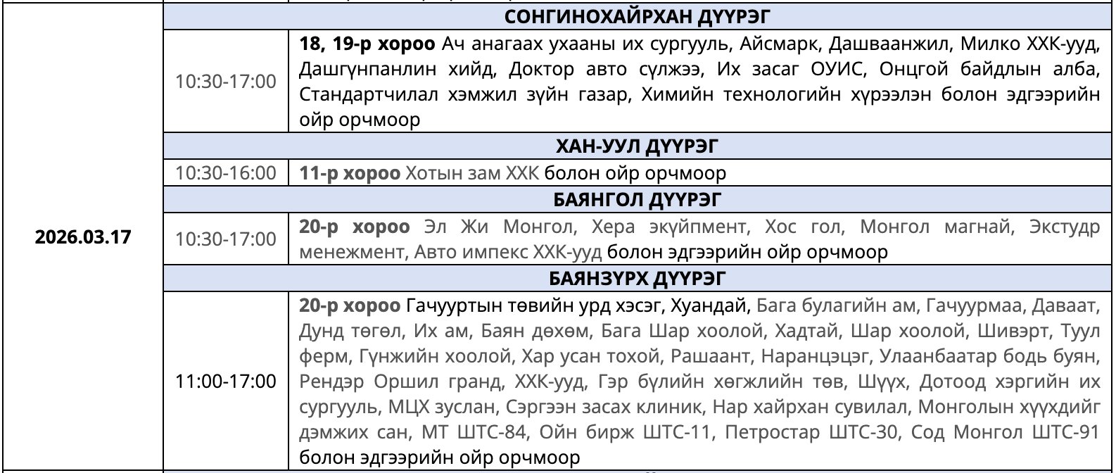 Гуравдугаар сард цахилгаан хязгаарлах хуваарь