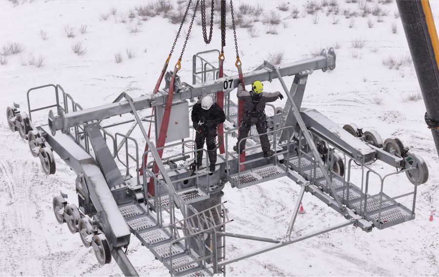 Тулгуур багануудыг бүрэн угсарснаар төслийн дараагийн шат болох ган татлага (тросс) татах болон тээврийн системийн үндсэн тоног төхөөрөмжийг суурилуулах ажлыг эхлүүлэх нөхцөл бүрджээ. Тус чиглэлд ашиглах 112 тонн жинтэй ган татлагыг 19 тулгуур баганын дээгүүр агаараар сүвлэн татаж суурилуулах бөгөөд уг ажлыг хоёрдугаар улиралд багтаан хэрэгжүүлэхээр төлөвлөсөн байна.