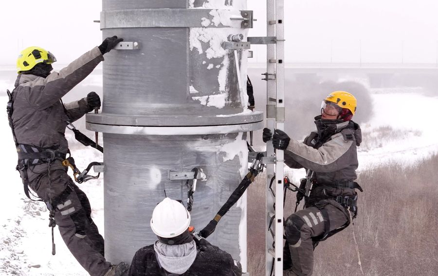 Энэ тухай төслийн талбайн ахлах инженер Д.Батчулуун “Тулгуур багануудыг суурилуулах явцад аюулгүй ажиллагаа, барилгын норм, стандартын мөрдөлтийг нэн тэргүүнд тавин ажиллалаа. Өнөөдөр цасан шуургатай байсан ч салхины хурд зөвшөөрөгдөх хэмжээнд байсан тул угсралтын ажлыг төлөвлөгөөний дагуу гүйцэтгэсэн” гэв.