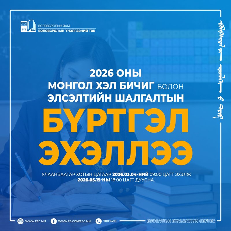 2026 оны Монгол хэл бичиг болон Элсэлтийн Шалгалтын бүртгэл өнөөдөр эхэллээ