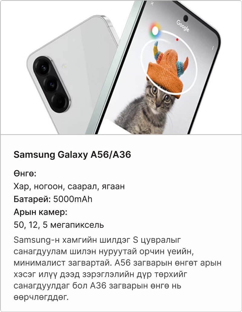 - Samsung Galaxy A56: www.mobicom.mn/product/806