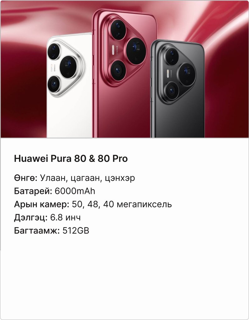 - Huawei Pura 80 Pro: www.mobicom.mn/product/972