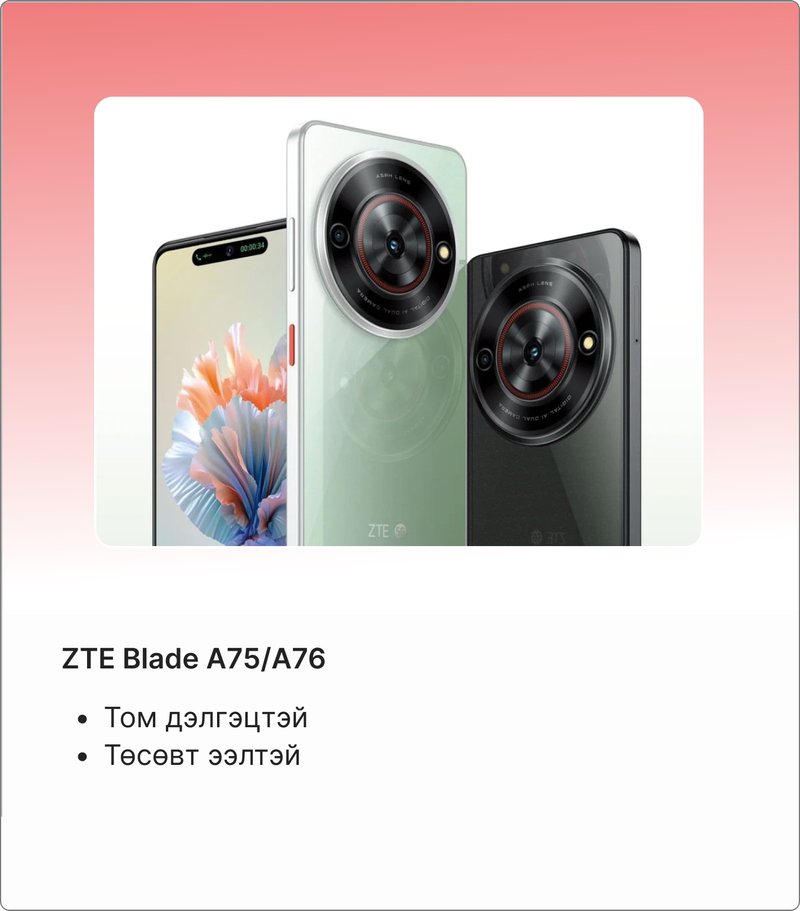 - ZTE Blade A76: www.mobicom.mn/product/990