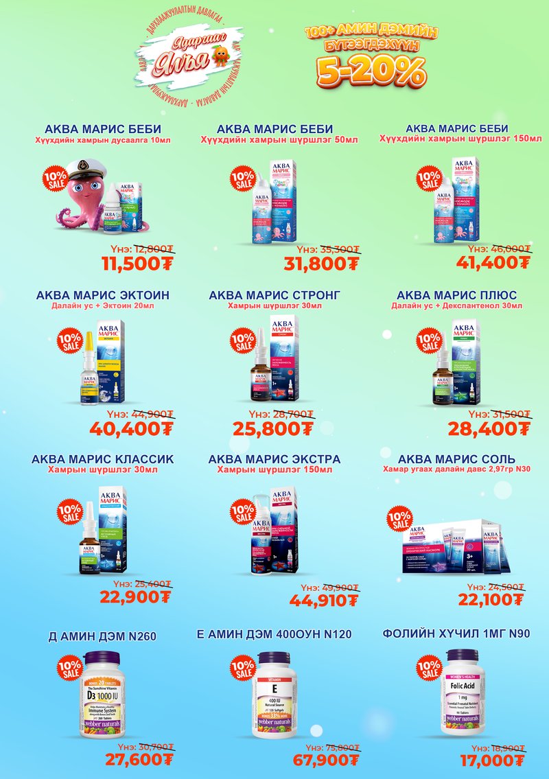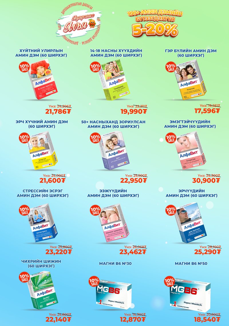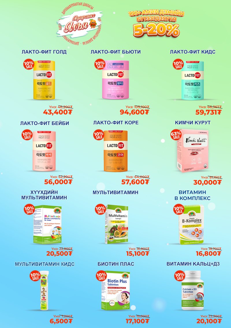 Цаг завгүй үедээ өөрт хэрэгтэй амин дэмийн бүтээгдэхүүнээ гэрээсээ захиалаад хүргүүлээд аваарай.