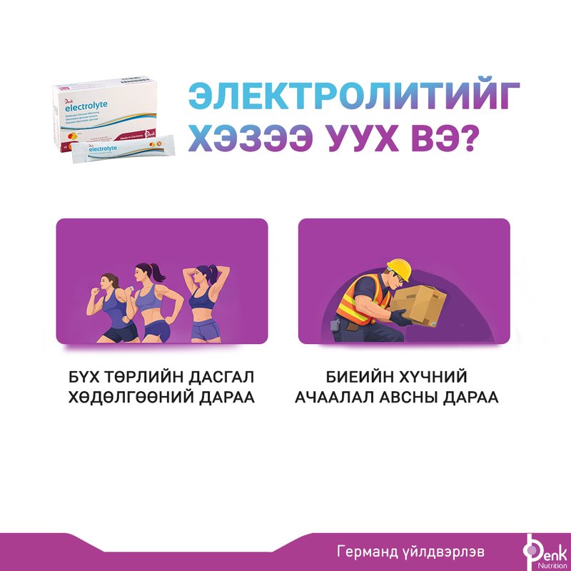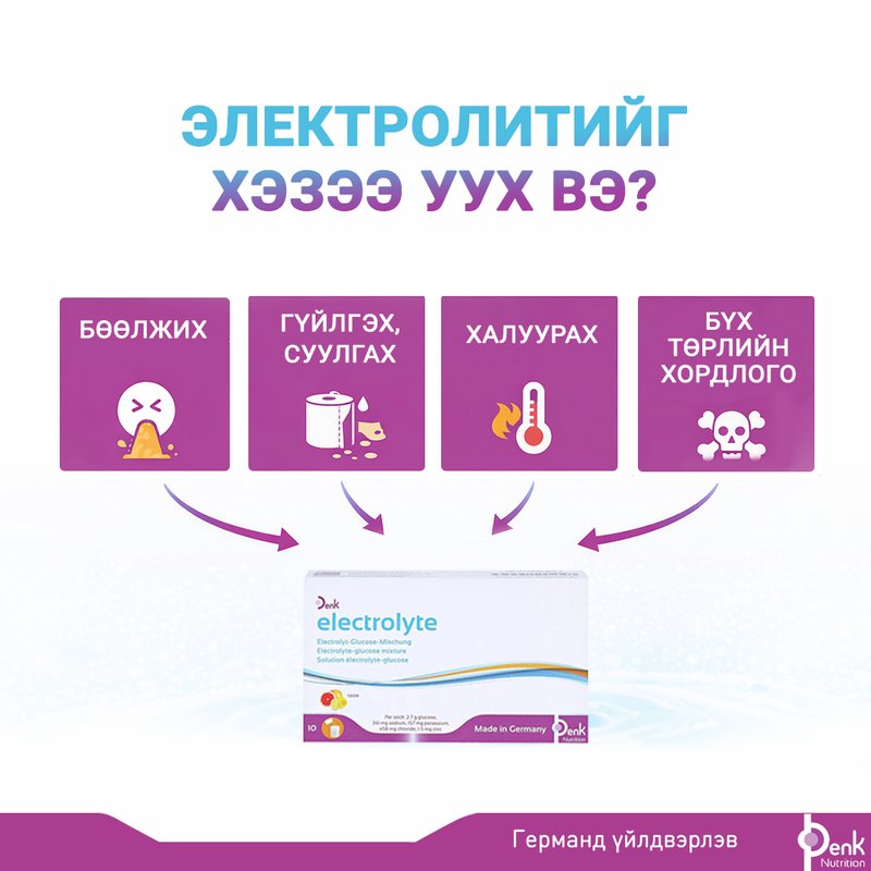 Жоргүй олгох, Герман улсад үйлдвэрлэсэн, Денкфармын Электролитийг ЭНД дарж захиалж, хүргүүлэн аваарай.