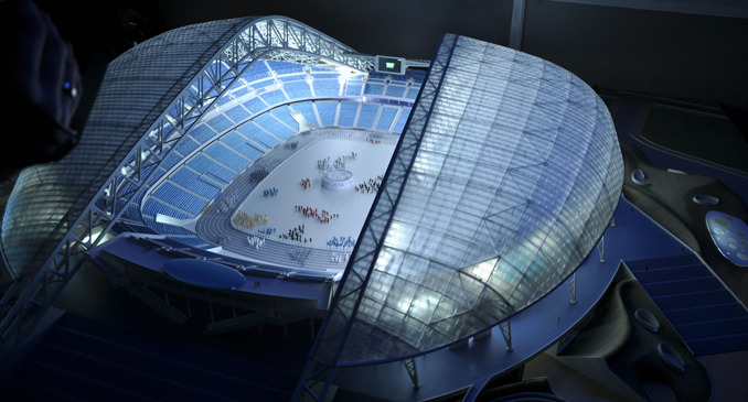 Нээлт, хаалтын ёслолын ажиллагаа болох цэнгэлдэх хүрээлэнд Кавказын нурууны баруун этгээдийн хамгийн өндөр оргил, далайн түвшнээс 2857 м-ийн өндөрт орших Фиштийн нэрийг хайрлажээ. Уг байгууламж 40 мянган хүний багтаамжтай бөгөөд 2007 оноос барилгын ажил нь эхэлж, 2013 оны арваннэгдүгээр сард ашиглалтад орсон юм. Уг барилгыг АНУ-ын “Популоус” компани зургийг нь гарган гүйцэтгэсэн, Тус компани нь Лондон хотын “Уэмбли”, “Эмирайтс”, “Уимблдон”, Австралийн “ANZ” АНУ-ын Ныо-Йорк хотын “Янки”, Майами хотын “Сан Лайф”, Чикаго хотын “Юнайтед центр” зэрэг цэнгэлдэх хүрээлэнг, спортын ордныг барьсан туршлагатай. Сочигийн олимпийн дараа “Фишт” цэнгэлдэх хүрээлэнгийн суудлын тоог 45 мянгад хүргэх бөгөөд 2018 оны хөлбөмбөгийн ДАШТ нэгээс хоёр тоглолтыг хүлээж авахаар болоод байгаа юм. Уг цэнгэлдэхийг барьж байгуулахад ойролцоогоор 778.7 сая ам.доллар зарцуулжээ.