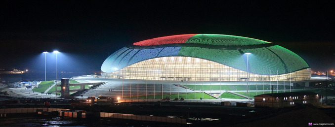 Орчин үеийн архитектурын шийдэл, технологийн дэвшлийг харуулсан бүтээл гэж болох “Айсберг” ордонд уран гулгалт, шорт-трекийн тэмцээнүүд болно. Энэхүү ордон нь 12 мянган хүний багтаамжтай бөгөөд богинохон хугацааны дотор мөсний температураа өөрчилж, бусад төрлийн тэмцээн уралдааныг ч хүлээж авах бололцоотойгоороо бусдаас онцлог. Тус ордонд 2012 оны арванхоёрдугаар сард уран гулгалтын Гран-пригийн шигшээ тэмцээн, энэ жилийн ОХУ-ын АПГГ, 2013 оны хоёрдугаар сард шорт-трекийн Дэлхийн цомын тэмцээнийг хүлээж авч байв. Олимпийн дараа байгууламжийг өөр хот руу нүүлгэж магадгүй.