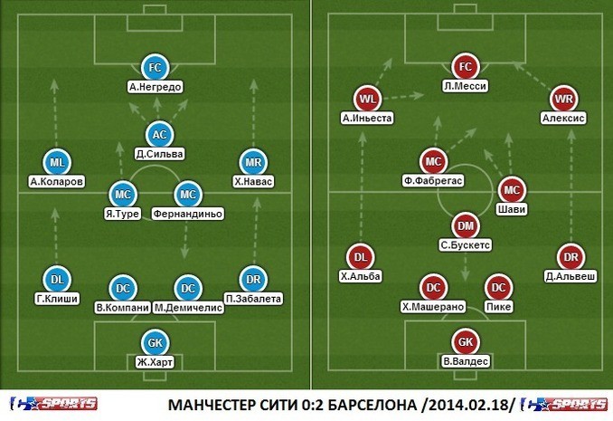Испанид маш амжилттай ажиллаж, Малага, Вильяреал клубүүдийг Аваргуудын лигийн шөвгийн наймд шалгаруулж байсан Чили мэргэжилтэн М.Пеллегрини гарааны бүрэлдэхүүндээ Х.Навас, Д.Сильва, А.Негредо гэсэн гурван Испани тоглогчийг гаргасан байлаа. Тэрчлэн өмнө нь Барсад харьяалагдаж байсан Я.Туре саяхан Бразилийн шигшээд дуудагдсан Фернандиньо нар төвийн шугамд дэлхийн шилдэг хагас хамгаалалтын хослол Шави-Бускетс-Фабрегас нарыг зогсоох үүрэгтэй зогсож байв. Гэмтлийн улмаас тоглолтыг өнжиж магадгүй гэгдэж байсан Х.Машерано төвийн хамгаалалтанд Пикегийн хамтаар гарсан бол Сити жигүүрийн хагас хамгаалалтанд үндсэн байрлал нь хамгаалагч А.Коларовыг гаргасан нь сонирхол татаж байлаа.