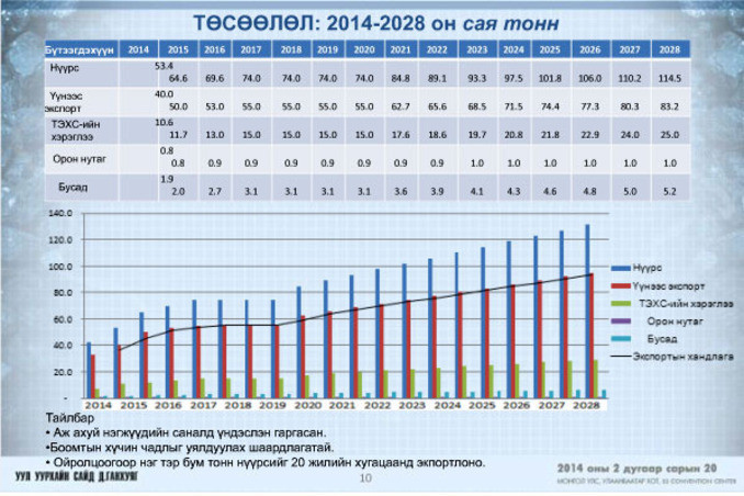 Энэхүү ирээдүйн чиг хандлага төсөөллийг аж ахуй нэгжүүдийн саналд үндэслэн гаргасан байна. Боомтын хүчин чадлыг уялдуулах шаардлагатай. Ойролцоогоор нэг тэрбум тонн нүүрсийг 20 жилийн хугацаанд экпортлох төлөвлөгөөтэй аж.