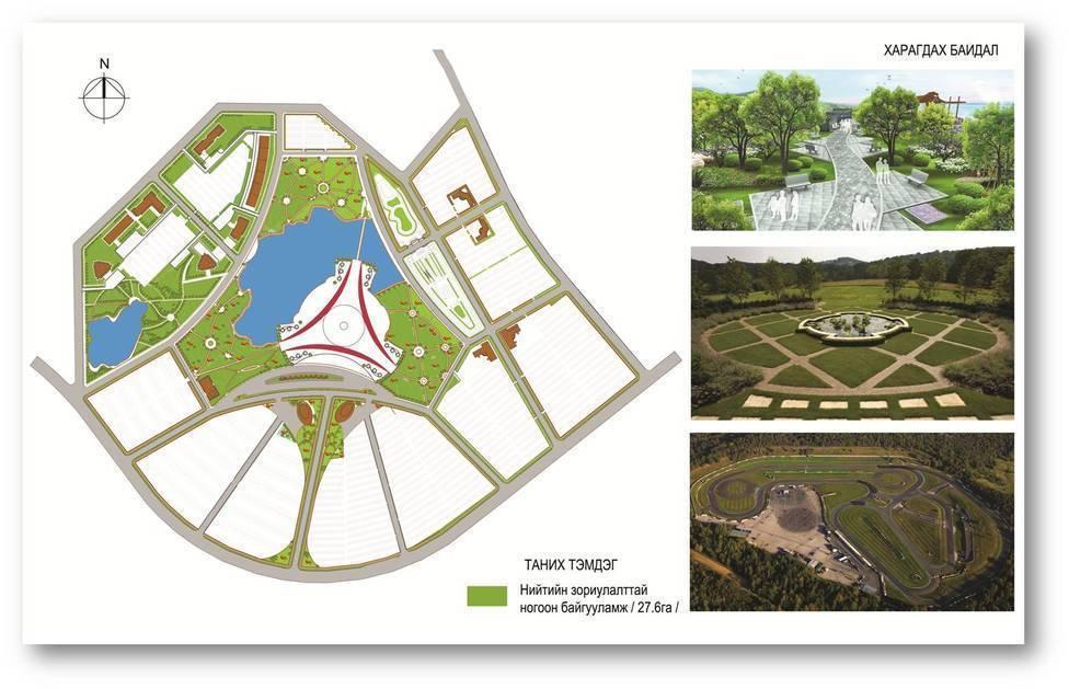 - 36,7 га талбайд цэцэрлэгт хүрээлэн, ногоон байгууламж