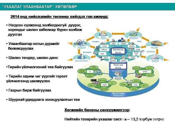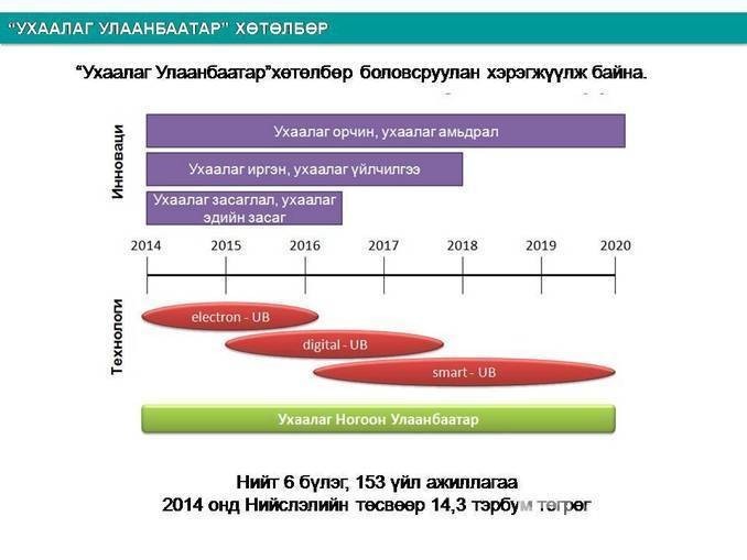 8. “Ухаалаг Улаанбаатар” хөтөлбөр боловсруулсан, 2020 он хүртэл үргэлжилнэ. Энэ хөтөлбөр бүрэн хэрэгжсэнээр компани, аж ахуйн нэгж албан байгууллагаасаа, иргэд гэрээсээ мэдээлэл үйлчилгээгээ авдаг болно.
