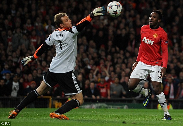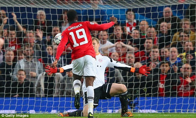 Тоглолтын эхний үе 0:0-ийн харьцаатайгаар өндөрлөсөн бөгөөд Манчестер Юнайтед гаргасан боломжоороо илүүрхсэн нь гэнэтийн зүйл байв. Данни Уэлбекийн оруулсан гоолыг бөмбөг тогтоохдоо гар хүрсэн гэж таамаглан тооцоогүй нь эргэлзээтэй шийдвэр байсан бол үеийн төгсгөлд хаалгачийн эсрэг ганцаарааа гарсан боломжоо тэрээр ашиглаж чадсангүй, М.Нойерт хаалгачихав. Түүний хаалгачийг давуулах гэсэн оролдлого нь энэ үеийн хамгийн том боломж байлаа. Байерны хувьд бөмбөгийг илүүтэй эзэмшиж, тоглолтын хэмнэлийг хянаж байсан ч Манчестерийн хамгаалалтыг сэтэлж чадахгүй л байв. Рио Фердинанд-Неманья Видичийн хослол оргил үеийнх шигээ тоглолтыг гаргаж хэд хэдэн чухал бөмбөг таслалтуудыг сүүлийн үед хийж байсныг онцлох хэрэгтэй. Байерны эцийн дамжуулалт, сүүлийн тогтоолтуудыг чухам энэ хослол байнга зогсоож байсан нь багт итгэл найдвар авчирч байв.
