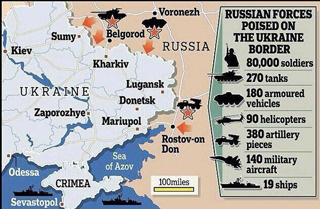 Украйны хил орчмын Донын Ростов, Воронеж, Белгород, Курск орчимд Оросын 40 мянган цэрэг бөөгнөрөөд байна хэмээн НАТО мэдэгдэв. Энэ тоо 50 мянгад хүрч магадгүй хэмээн Украйны цэргийн шинжээч Дмитрий Тимчук үзэж байна.