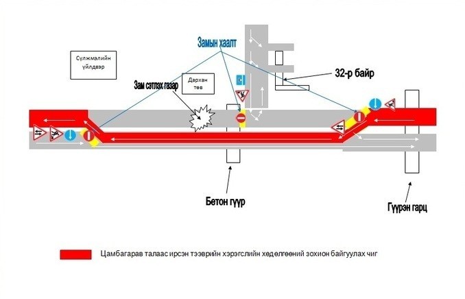 Энэ хугацаанд Хархорин захын баруун талын буцаж эргэдэг гарцны хойд талын зорчих хэсгийг хааж, урд замыг сөрөг хөдөлгөөнтэй болгох юм байна.