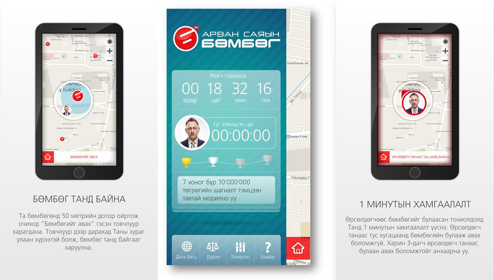 Та ухаалаг утас, дата багцаа ашиглаад л энэхүү тэмцээнд оролцох боломжтой. Уралдаанд оролцсоноор та Улаанбаатар хотод байрлах виртуал бөмбөгнүүдийг ангуучлах бөгөөд долоо хоногийн хугацаанд бөмбөгийг өөртөө хамгийн удаан хадгалж чадсанаар 10 сая төгрөгний шагналын эзэн болно. Тэмцээний ялагчийг тодруулахдаа Бөмбөг хадгалагдсан хугацааг цаг, минут, секундээр нарийвчлан тооцож шалгаруулна.