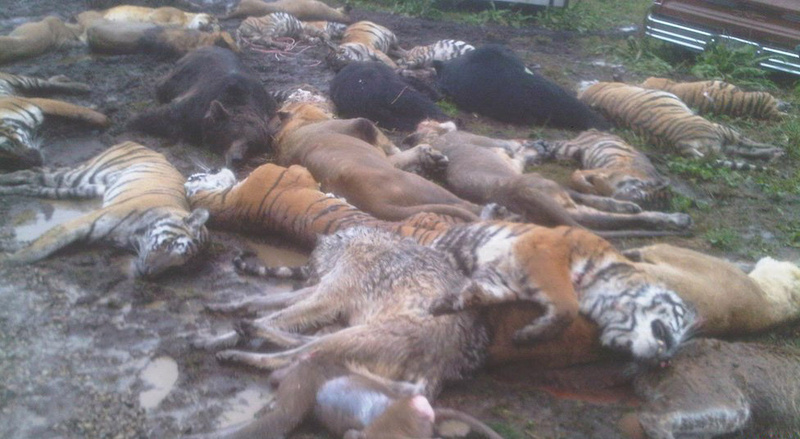 2011 оны аравдугаар сарын 18-ны өдөр Охайо мужийн Занесвиллийн ойролцоо толгойдоо сум зоосон Терри Томпсон сүүлчийн удаа өөрийн цогцсоороо тэжээдэг зэрлэг амьтдаа хооллосон жигтэй хэрэг мандсан нь энэ билээ.