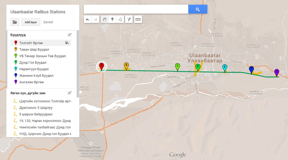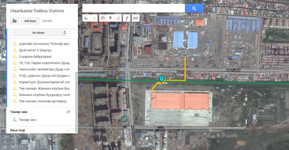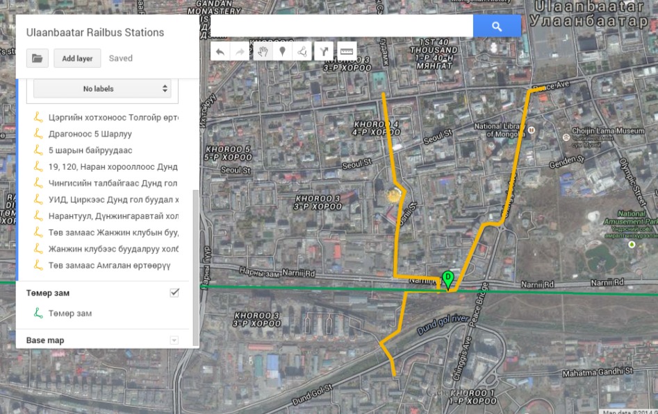 Зураг 5. Нарантуул, Дүнжингарав худалдааны төвүүдийг рейлбустай холбох нь (Эх сурвалж: Google Maps)