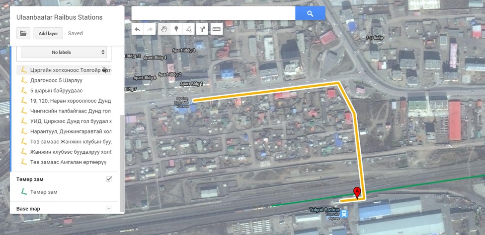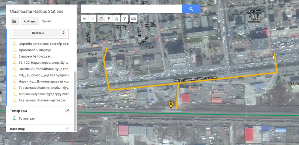 Зураг 1. Улаанбаатар Рейлбус Системийн албан бус газрын зураг (Эх сурвалж: Google Maps)