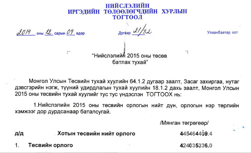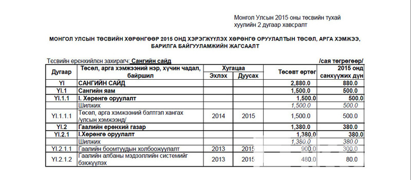 Одоогийн байдлаар ихэнх томоохон байгууллагын 2015 оны төсөв, гүйцэтгэл нэгдсэн цахим хуудаст орчихсон байгаа тул хүссэн хүн бүр орж үзэх боломжтой.