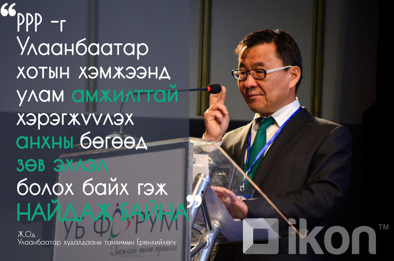 Улаанбаатар хот маань бидний нүдэн дээр өөрчлөгдөж, нөхцөл байдал сайжирч байна. Гэхдээ хувийн хэвшилд чамлахааргүй нөөц бололцоо байгаа. Энэ нөөц бололцоог зөв дайчлан хотын хөгжил, амьдралын хэв маяг, амьдралын чанарыг сайжруулахад хамтраад, хувийн хэвшлийнхнийг оролцуулж чадах юм бол өнөөдөр маш хурдан сайжирч байгаа Улаанбаатар өшөө хурдан, өшөө өргөн цар хүрээгээр сайжрах бололцоо байгаа гэж бид бодож байна. Энэ үүднээс ч гэсэн энэхүү форумыг хотын удирдлага маш идэвхтэйгээр, өндөр түвшинд зохион байгуулж байгаа нь хамтын ажиллагаа PPP-г Улаанбаатар хотын хэмжээнд улам амжилттай хэрэгжүүлэх анхны бөгөөд зөв эхлэл болох байх гэж би найдаж байна” гэдгийг онцолсон юм.