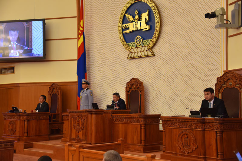 Монгол Улсад Байнгын ажиллагаатай парламент байгуулагдсаны 25 жилийн ойд зориулсан Улсын Их Хурлын Хүндэтгэлийн хуралдаан өнөөдөр 11 цаг 45 минутад 55,3 хувийн ирцтэй эхэллээ.