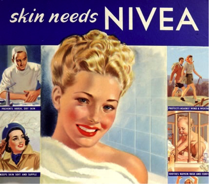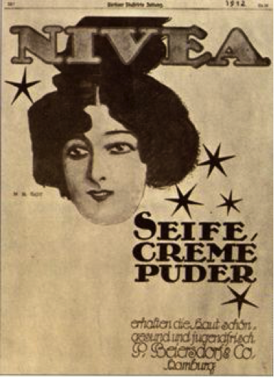 Брэнд тухайн үеийнхээ эмэгтэй хүний дүр төрхийг илэрхийлж байлаа. “Beiersdorf” компани ч өөрийн бараа бүтээгдэхүүний борлуулалтаа ихэсгэх гэж зар сурталчилгааг цуцалтгүй хийж байв. “Одод гийсэн эмэгтэйн хөрөг” энэ бол 1912 онд уран зураач Ханс Руд Эрдтийн санаачилсан “Nivea”-гийн зарын анхны загвар байсан юм.