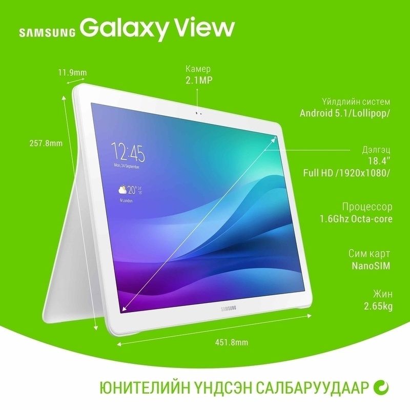 Самсунг брэндийн албан ёсны түнш Юнителийн үйлчилгээний үндсэн салбаруудаас Galaxy View-ийг бэлнээр болон урьдчилгаа төлбөртэй лизингийн нөхцлөөр тус тус худалдан авах боломжтой байна. Лизингийн нөхцлийн тухай дэлгэрэнгүй мэдээллийг ЭНДЭЭС авна уу?