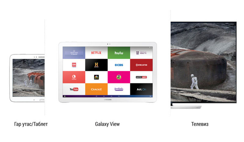 Дээрх хэрэгцээ шаардлагыг мэдэрч телевиз шиг том 18 инчийн дэлгэцтэй, өндөр чанарын чанга яригчтай гэсэн хирнээ гар утас, энгийн таблет шиг хаашаа ч аваад аялах боломжтой Galaxy View-ийг бүтээсэн юм.
