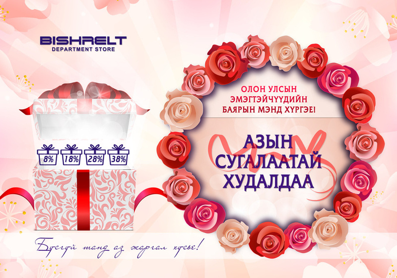 Бишрэлт Их дэлгүүр "Мартын 8" буюу Олон улсын эмэгтэйчүүдийн эрхийг хамгаалах өдрийг тохиолдуулан “Азын сугалаатай, хямдралтай” баярын худалдаагаа эхлүүллээ.