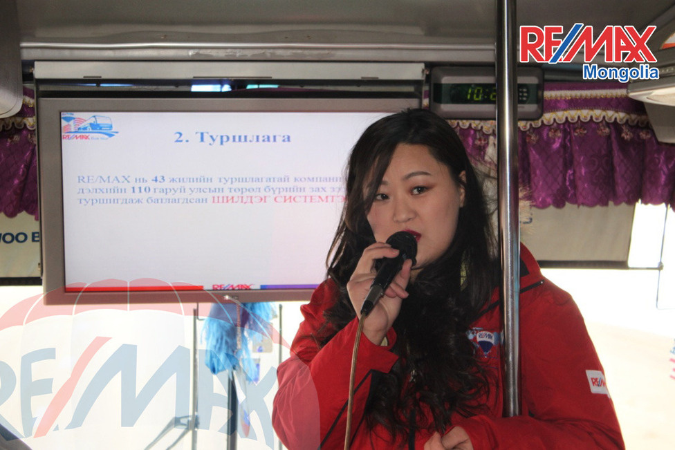 RE/MAX MONGOLIA олон улсын үл хөдлөх хөрөнгө зуучлалын компани нь өнгөрсөн бямба гаригт үл хөдлөх хөрөнгө танилцуулах ээлжит ОЛОН УЛСЫН ЖИШИГ СТАНДАРТАД НИЙЦСЭН АВТОБУСТАЙ АЯЛАЛ (BUS TOUR)-ыг БГД, Улаанбаатар хотын баруун бүсэд байршилтай шилдэг төслүүд болох КАПИТАЛ ТАУН, БЛҮ ЖЕМ-3, СОДОН ХОРООЛОЛ, АПАРТМЕНТ-88, МАЙ ТАУН, ТЭНҮҮН АПАРТМЕНТ зэрэг хотхонуудаар мэргэжлийн агентуудын тусламжтайгаар аялал нь 4 цаг үргэлжилж нийт 40 гаруй хүмүүс хамрагдлаа. Энэхүү автобустай аялалыг бид 3 дахь удаагаа зохион байгуулж байгаа бөгөөд маш олон хэрэглэгчид бидэнд хандаж байгаа тул бид цаашдаа сард 2-3 удаа зохион байгуулахаар зорин ажиллаж байна. РеМакс Монголиа нь Монголын маш олон барилгын компаниуд, төслүүдтэй тусгайлсан гэрээгээр хамтран ажилладаг тул маш олон боломжуудаас таньд сонголтоо хийх боломжыг олгодог. Мөн дэлхийн 110 орны үл хөдлөх хөрөнгүүдээс өөрт хэрэгтэйг сонгоход хэрэглэгч, харилцагч нарынхаа хооронд гүүр болж ажилладаг гэдгийг хэрэглэгч таньд дуулгая.