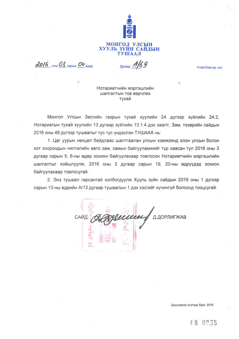 Хууль зүйн сайд Д.Дорлигжавын тушаалаар Нотариатчийн мэргэшлийн шалгалтыг хойшлуулахаар болсон байна.