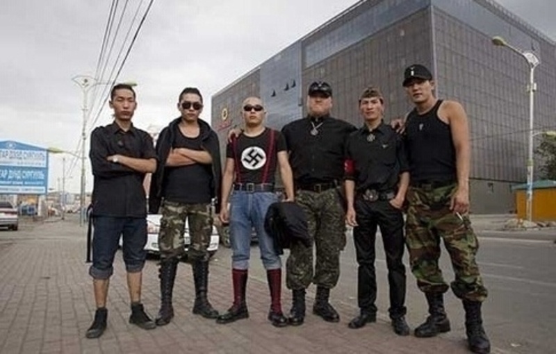 Дараах нийтэд тархсан зурагт Хятад цагаачдад хүч хэрэглэдэг Монголын экстремистүүдийг харуулж байна.