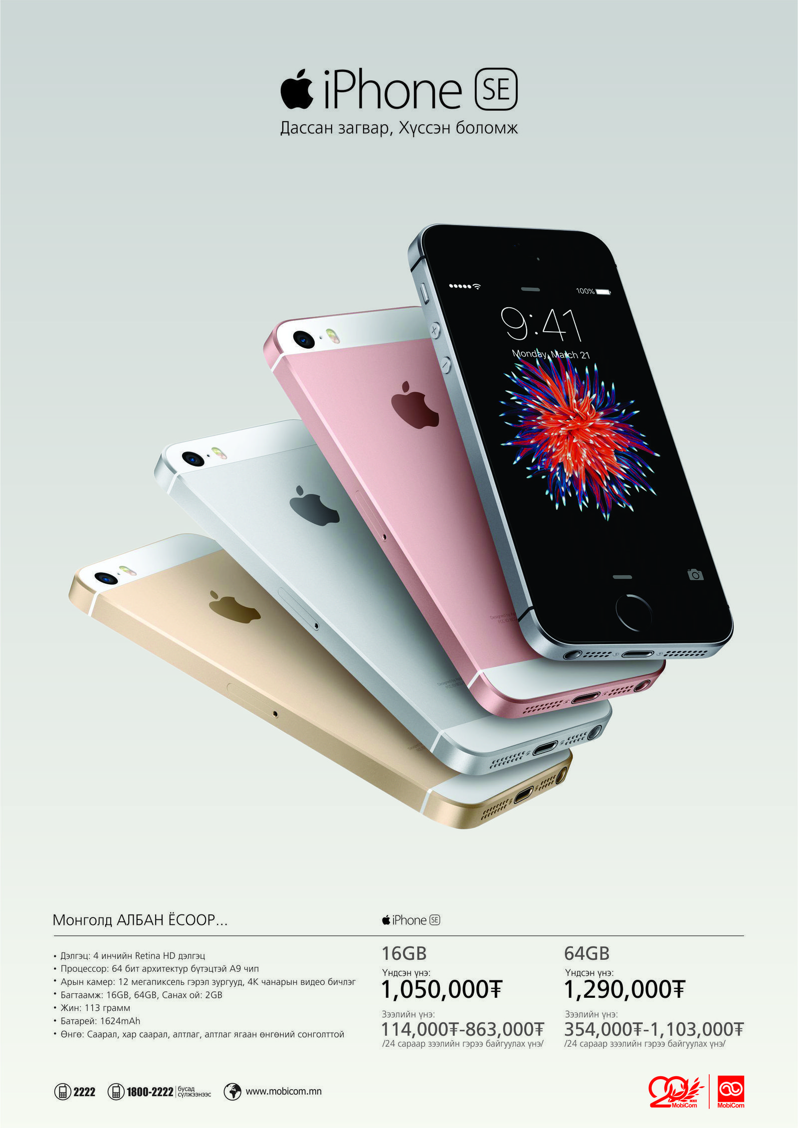 Apple компанийн албан ёсны борлуулагч Мобиком Корпораци дэлхий дахинд нээлтээ хийгээд тун удаагүй байгаа iPhone SE гар утсыг худалдаалж эхэллээ.