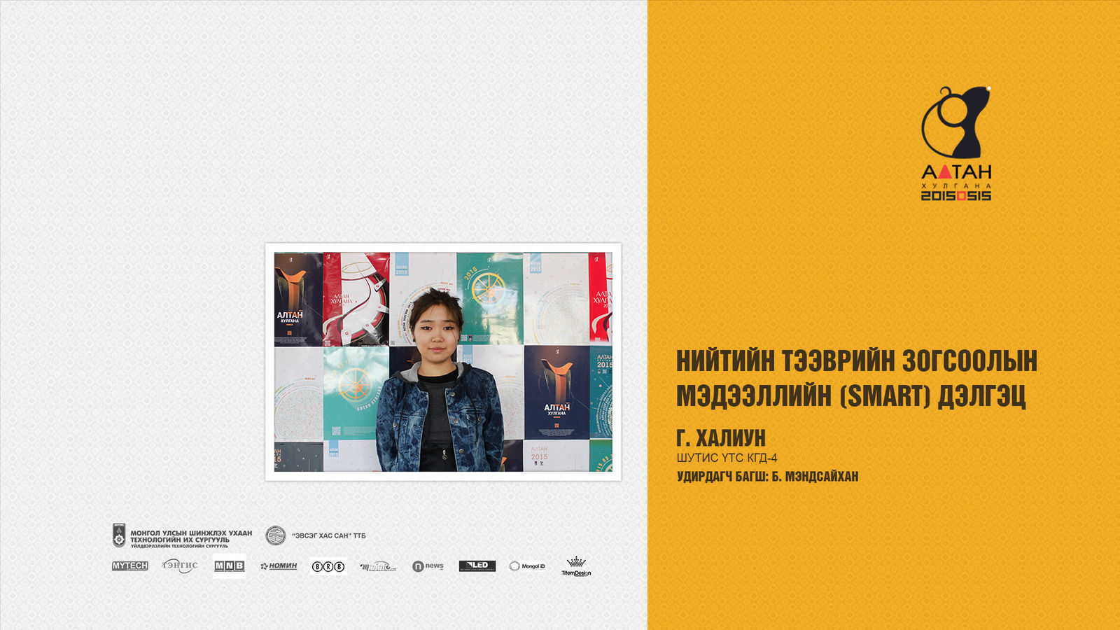 “Алтан хулгана” наадам 2015 онд “Би Чи Бид” гэсэн Монгол агуулга, сэтгэлгээг тусгасан сэдвийн дор зохион байгуулагдан 261 оюутны 141 бүтээл оролцсон байна. Энэ наадам нь жил бүр өөр өөр өнгө төрх, уриатайгаар зохион байгуулагддаг ба оюутнуудын бүтээлээс Монгол ахуй, соёл уламжлал харагдаж байсан юм. Ингээд “Алтан хулгана” 2015 наадмын шилдэг бүтээлүүдийг танилцуулж байна.