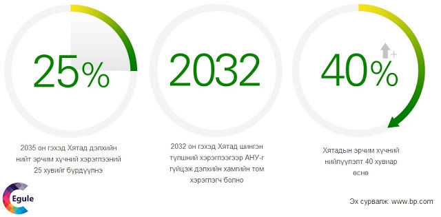 Газрын тос, эрчим хүчний дэлхийн томоохон компаниудын нэг болох BP Group-н тооцоолсон манай урд хөрш Хятадын эрчим хүчний эрэлт, нийлүүлэлтийн таамаглалыг танилцуулж байна.