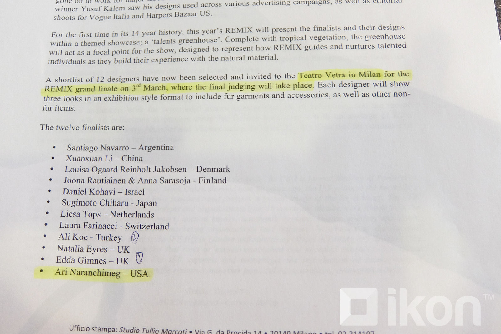 Ингээд Ари Наранчимэг нь шилдэг 12-т багтан, Итали улсыг зорьсон.