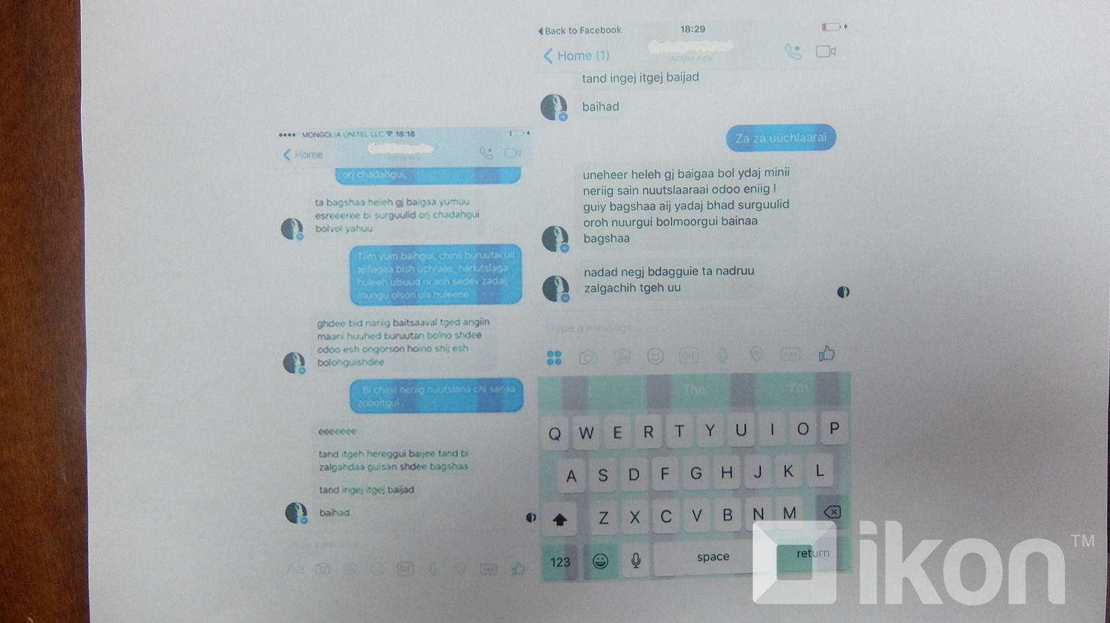 Жишээ нь, надтай нэг математикийн багш холбогдсон. Тэр багш нэр, сургуулиа нууцлахыг хүссэн учраас би хэлэхгүй. Юу гэсэн бэ гэхээр тэр багшаас давтлага авч байсан хүүхэд нь математикийн шалгалтын өмнөхөн түүн рүү фэйсбүүкээр бодлогын зураг явуулаад, яаралтай бодоод явуулж өгөөч гэж. Сурагчаа бодоод ирүүлсэн бодлогуудыг нь бодож, хариуг нь явуулж. Дараа нь шалгалтын хариуг харахад яг таарч байсан гэсэн. Хүүхдийнх нь нэрийг дараад тэр багш, сурагч хоёрын харилцсан чатыг хэвлээд авчихсан байгаа.