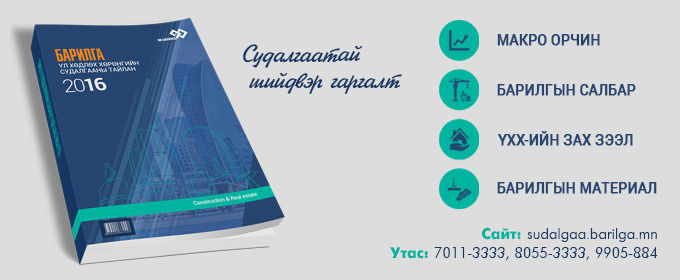 Эх сурвалж: “Барилга, үл хөдөх хөрөнгийн судалгааны тайлан 2016”