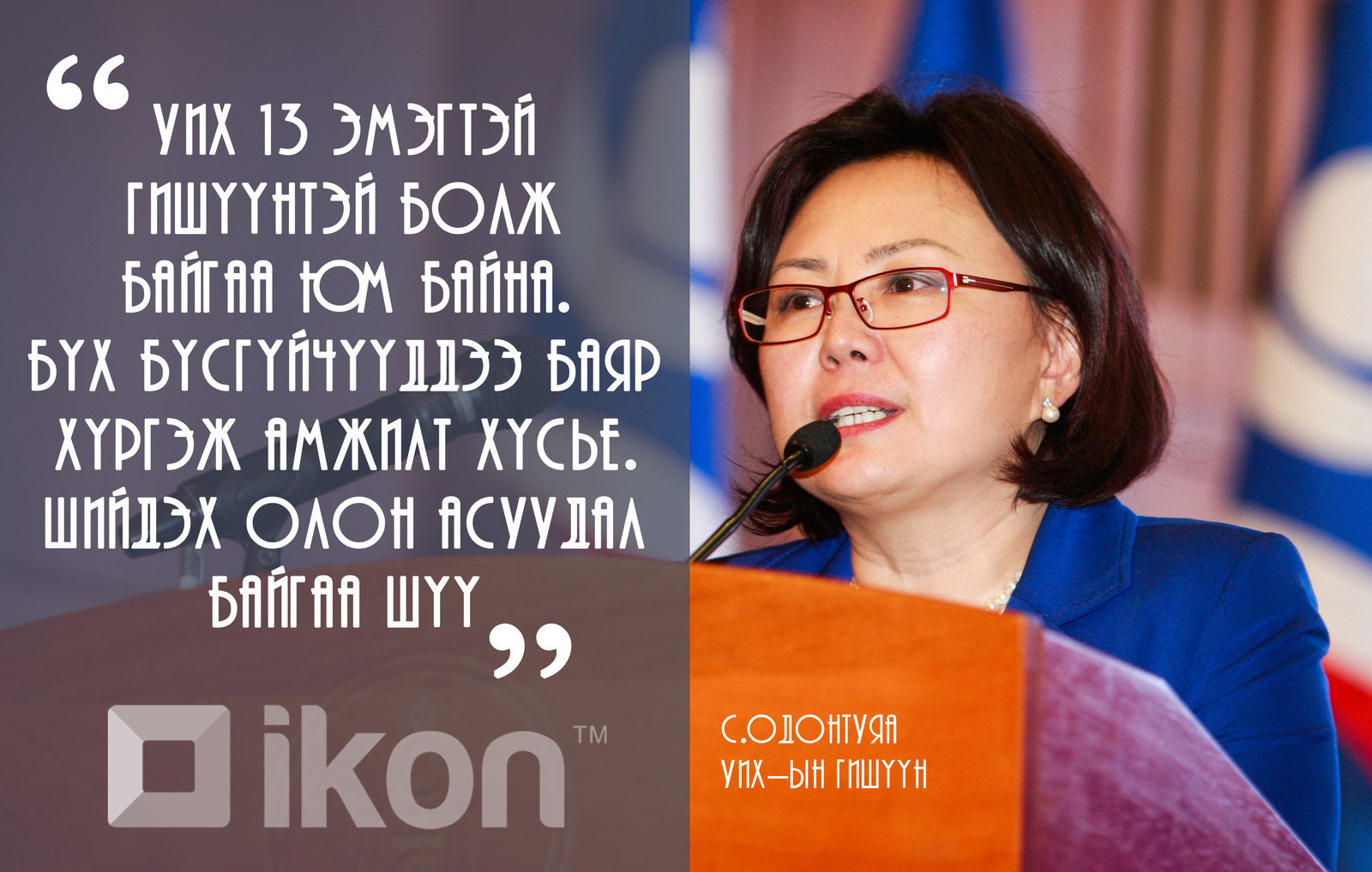 Хэвлэл мэдээллийн байгууллагууд (Телевиз, Радио, Social болон Вэб хуудаснууд) манай мэдээллийг аливаа хэлбэрээр бүрэн ба хэсэгчлэн авч ашиглах хориотой ба зөвхөн зөвшилцсөн тохиолдолд эх сурвалжийг (ikon.mn) дурдах замаар ашиглах ёстойг анхаарна уу!