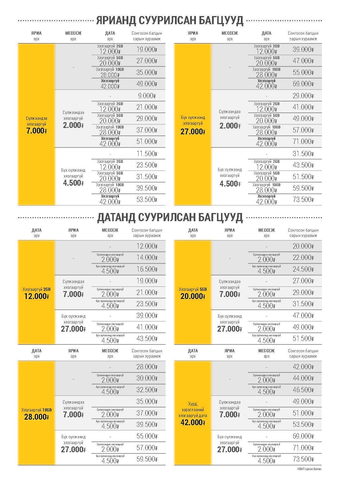Та хэрэгцээнийхээ хэрээр дата, яриа, мессеж гэсэн бүтээгдэхүүнүүдээс “сагсандаа” хийгээд ашиглах боломжтойгоос гадна бүх үйлчилгээг ямар ч хязгаарлалтгүй ашиглах боломж бас нээлттэй бий.