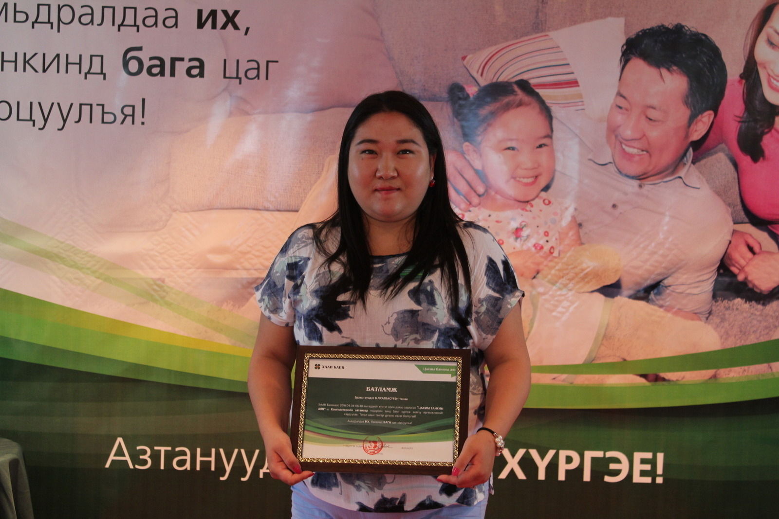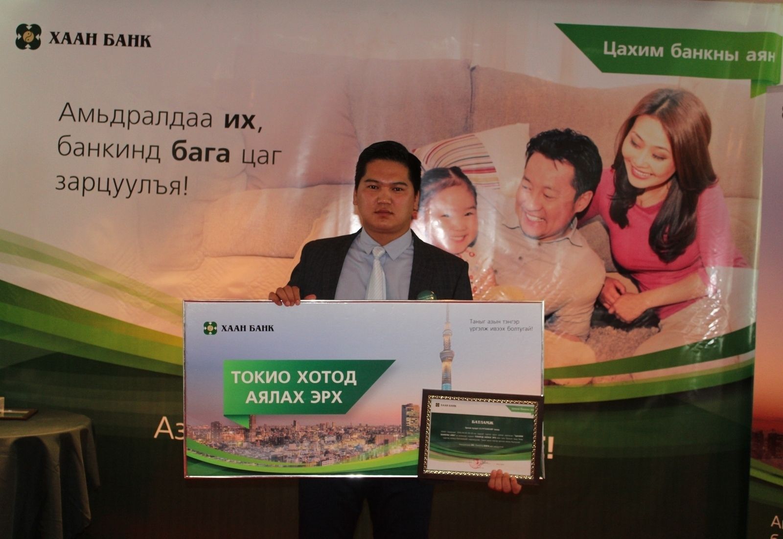 Цахим банкны аяны сүүлийн тохирлын ширээний компьютерийн азтанаар Б.Лхагвасүрэн, Д.Баатарчулуун нар, Нөүтбүүкний азтанаар М.Машбат нар УБ хотоос шалгарсан бол iPad-ны азтанаар Дундговь аймгийн харилцагч О.Батсүрэн, iPhone6s гар утасны азтанаар Дорноговь аймгийн харилцагч Ч.Баянмөнх, Токио хотод аялах эрхийн азтанаар УБ хотын харилцагч О.Ууганбаяр нар тус тус шалгарч ХААН Банкны Гүйцэтгэх захирал Жон Беллээс шагналаа гардан авлаа.