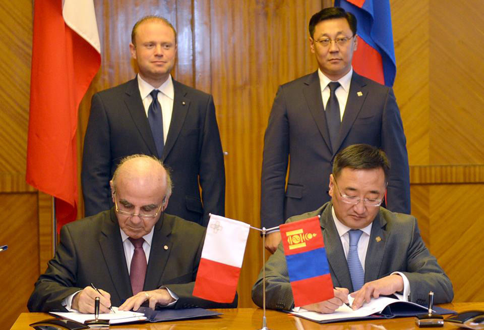 ЗУРГАА. “Гуравдагч хөрш”-ийн бодлогын хүрээнд Монгол Улсын Гадаад хэргийн яамны сайд Л.Пүрэвсүрэн, Бүгд Найрамдах Мальта Улсын Гадаад хэргийн сайд Жорж Велла нар “Дипломат болон албан паспорт эзэмшигчдийг визээс харилцан чөлөөлөх тухай” хэлэлцээрт гарын үсэг зурлаа. Дашрамд дурдахад Мальта Улс 2017 оны нэгдүгээр сараас Европын Холбоог даргалах юм.
