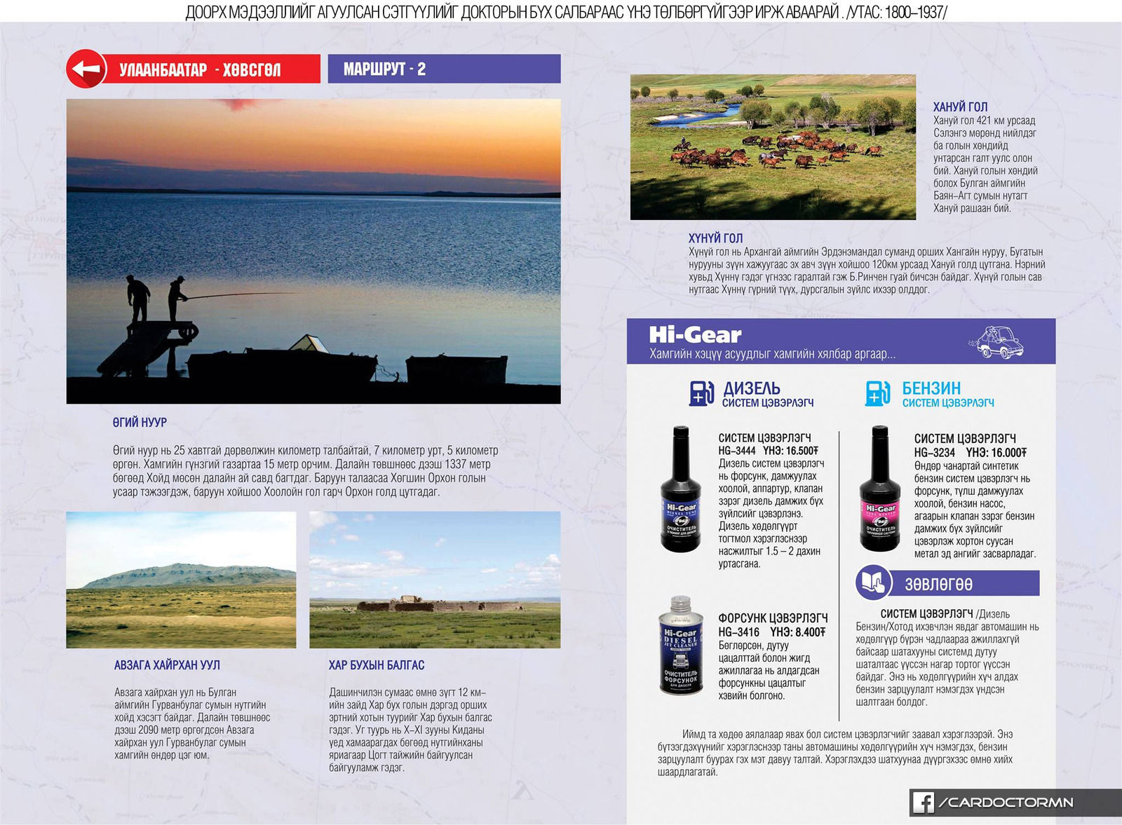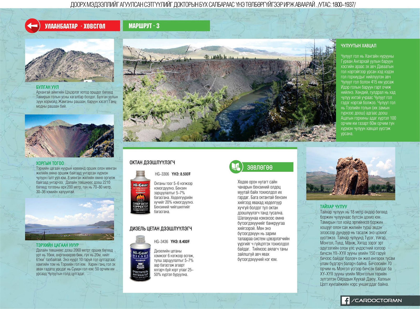 Уншигч та бүгдэд Cardoctor сэтгүүлийн ЗАМД ГАРЪЯ булангаас УЛААНБААТАР-ХӨВСГӨЛ орох гурван төрлийн маршрутыг танилцуулж байна.