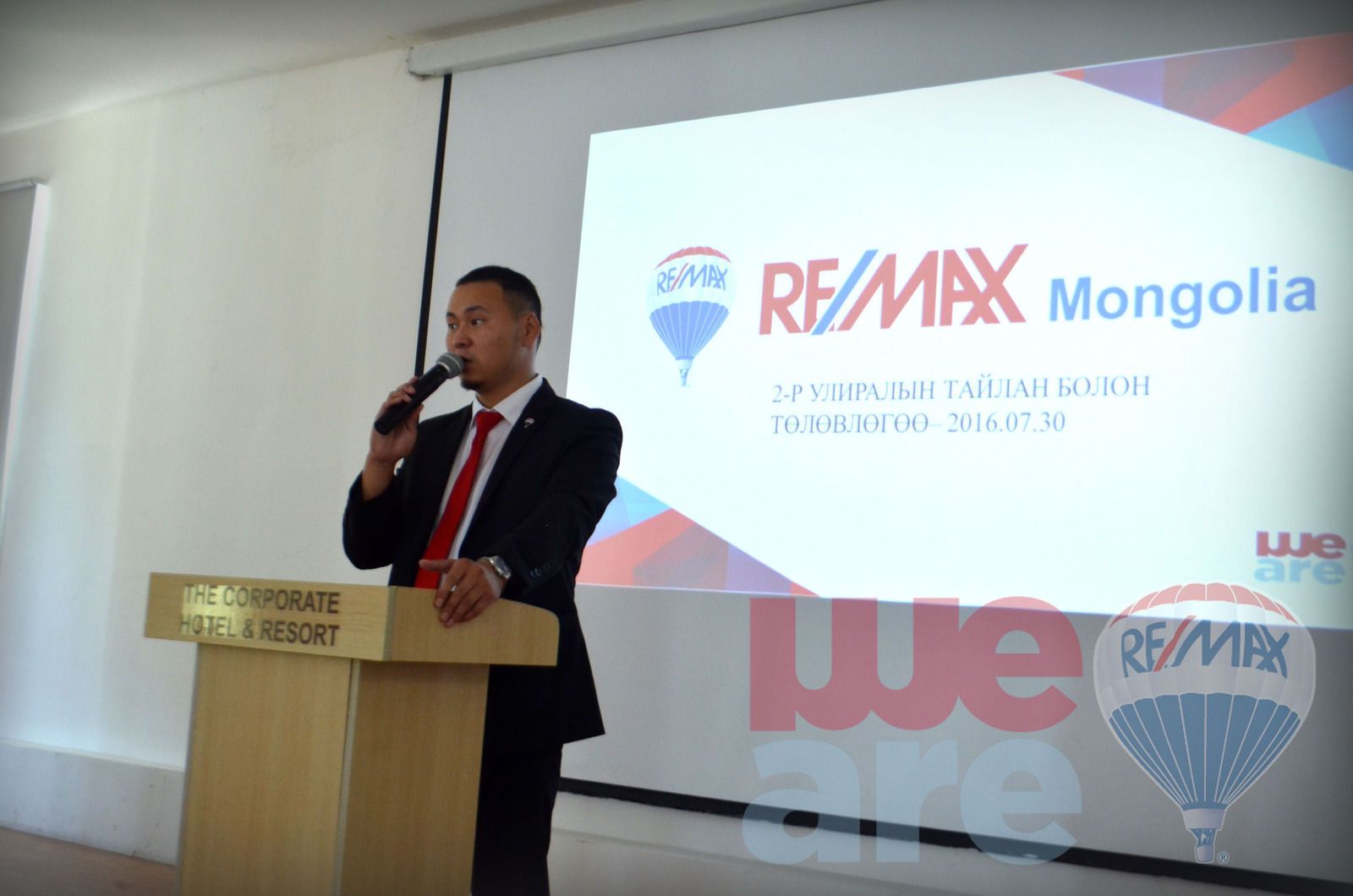 RE/MAX Mongolia нь, энэ оны эхний хагасын байдлаар 8 брокер оффис, 100 гаруй агенттайгаар Улаанбаатар хотын бүхий л цэгт хүрч ажиллаж байгаа бөгөөд 40 тэрбум гаруй төгрөгний борлуулалттай ажиллажээ. Тэд энэ оны эцэс гэхэд 12 брокер оффис, 150 гаруй агенттай болох зорилт тавин ажиллаж байна.