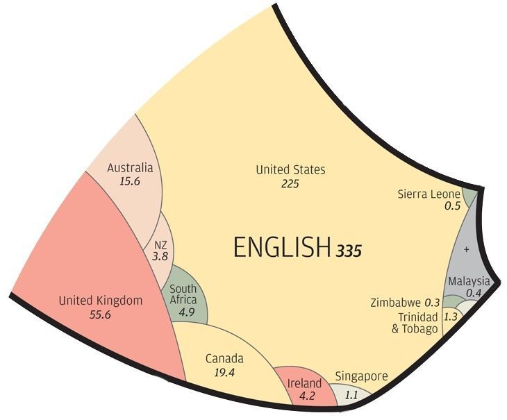 Одоогоор нийтдээ 335 сая хүний эх хэл нь Англи бөгөөд үүнээс 225 сая хүн нь АНУ-д байдаг байна. Англи хэлээр ярьдаг 110 орон байдаг нь бусад ямар ч хэлнээс илүү үзүүлэлт юм.