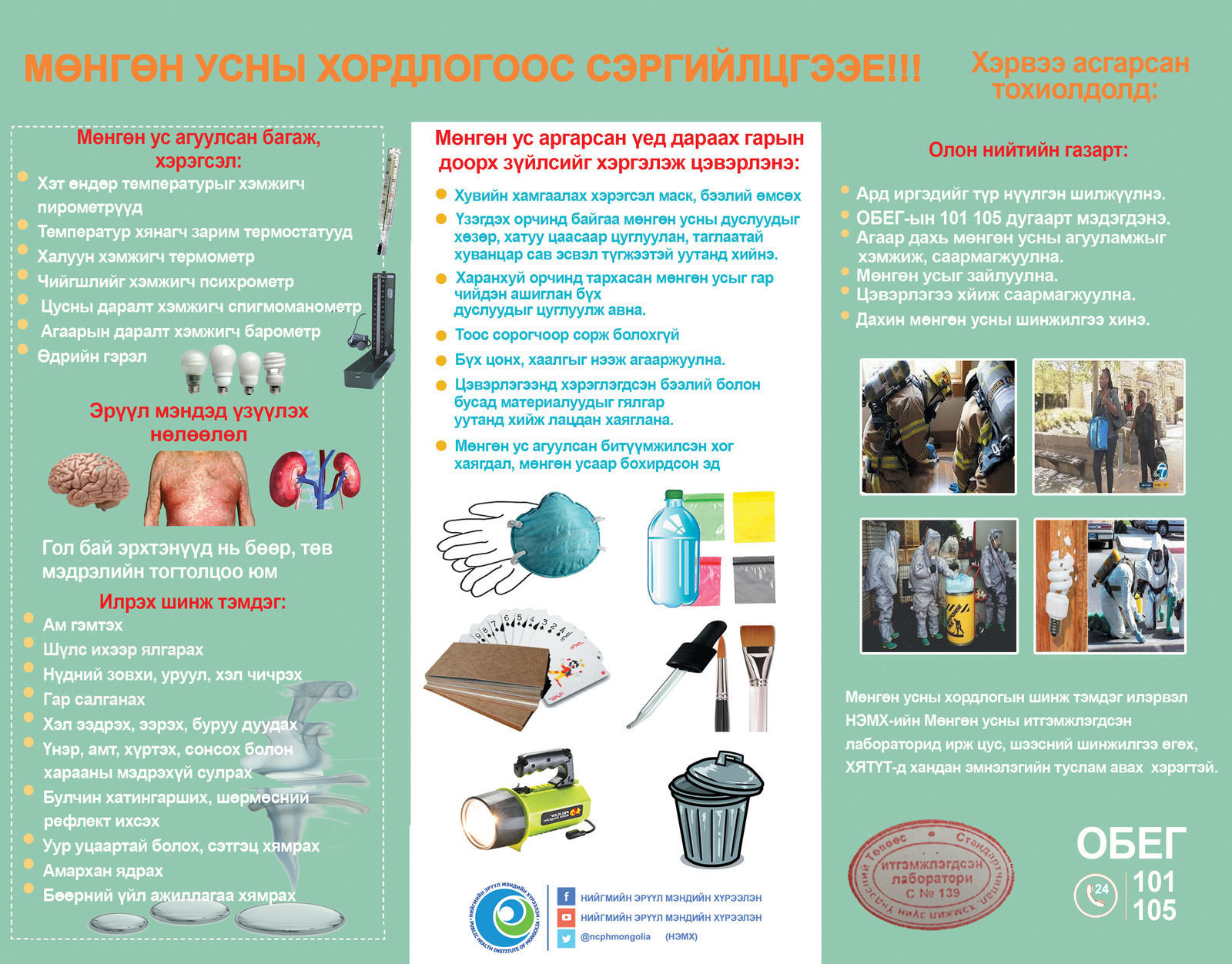 Үүнтэй холбогдуулан Нийгмийн Эрүүл Мэндийн Хүрээлэнгээс мөнгөн усны хордлогоос сэргийлэх талаар зөвлөмж бэлтгэснийг хүргэж байна.