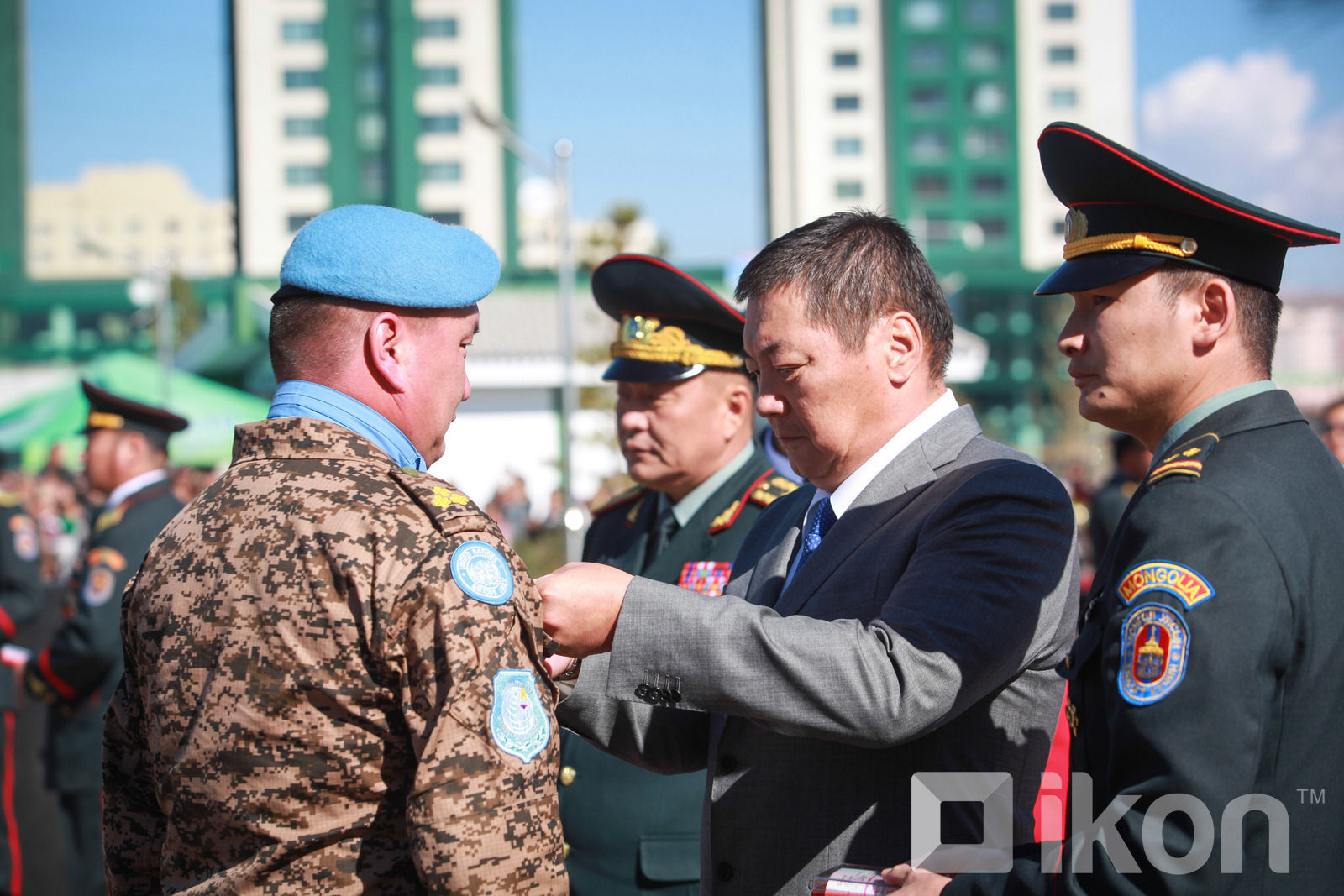 Өнөөдөр Үндэсний цэцэрлэгт хүрээлэнд олон улсын Энхийг сахиулагчдын өдрийг тэмдэглэлээ. Уг арга хэмжээний үеэр Монгол Улсын Ерөнхийлөгчийн зарлигаар Бүгд Найрамдах Өмнөд Судан Улс дахь НҮБ-ын энхийг сахиулах “UNMISS“ ажиллагаанд үүрэг гүйцэтгэсэн хурандаа Б.Баатар захирагчтай 5 дугаар ээлжийн мотобуудлагын батальон, Бүгд Найрамдах Судан Улсын Дарфур мужид явуулж буй Африкийн холбоо, НҮБ-ын хамтарсан энхийг сахиулах “UNАMID” ажиллагаанд үүрэг гүйцэтгэсэн дэд хурандаа Г.Тунгаамаа захирагчтай цэргийн хээрийн хоёрдугаар шатны эмнэлгийн 6 дугаар ээлжийн бие бүрэлдэхүүнд төрийн одон, медаль гардуулах ёслол боллоо.