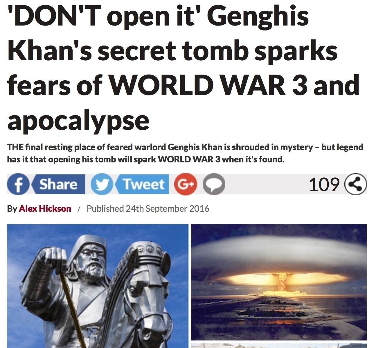Чингис хааны бунхныг хөндвөл дэлхийн III дайн эхэлнэ гэж Британий шар хэвлэлд бичжээ