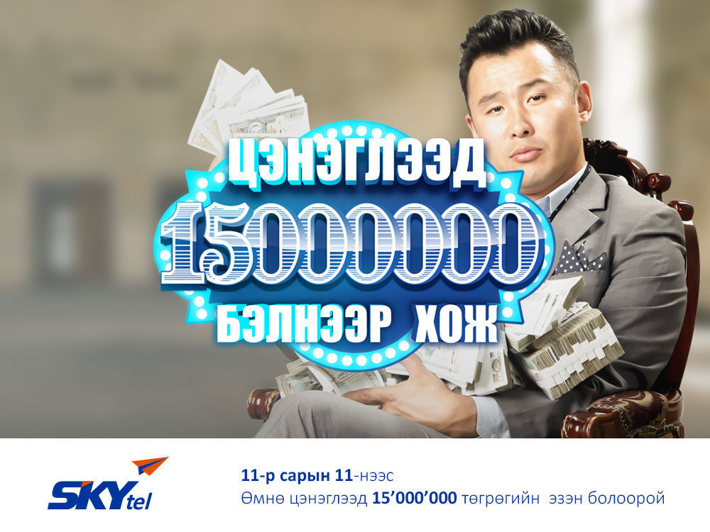 СКАЙтел компаниас урьдчилсан төлбөрт хэрэглэгчдэдээ зориулан зарлаж буй 1000 ДАХИН ҮРЖҮҮЛЭГЧ сугалаат урамшууллын сүүлийн тохирол энэ Баасан гарагт буюу 2016 оны 11-р сарын 11-нд явагдаж, 10,000,000₮ болон 15,000,000₮ хожих СУПЕР азтануудаа тодруулах гэж байна.