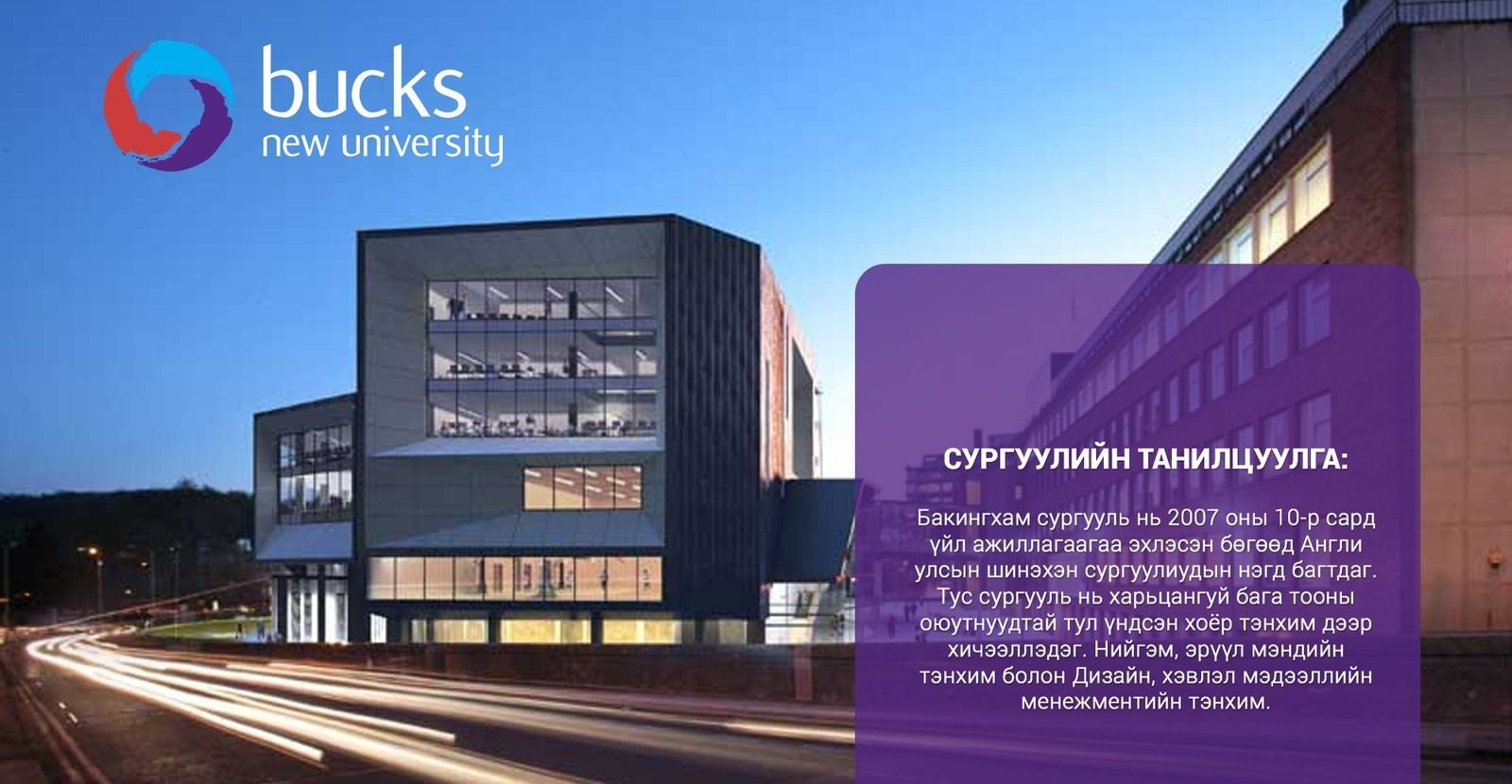 Бакингхам сургууль нь 2007 оны 10-р сард үйл ажиллагаагаа эхлэсэн бөгөөд Англи улсын шинэхэн сургуулиудын нэгд багтдаг. Тус сургууль нь харьцангуй бага тооны оюутнуудтай тул үндсэн хоёр тэнхим дээр хичээллэдэг. Нийгэм, эрүүл мэндийн тэнхим болон Дизайн, хэвлэл мэдээллийн менежментийн тэнхим.